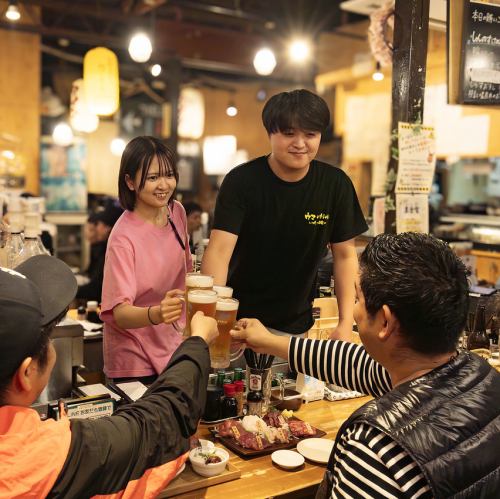 オープンカウンターのにぎやかな店内♪スタッフにより心をこめておもてなしいたします♪オススメメニューやサプライズ演出などお気軽にスタッフお問合せください。